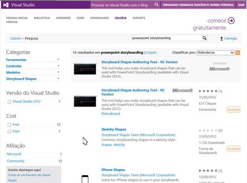 No Visual Studio Gallery (http://visualstudiogallery.msdn.microsoft.com/site/search?query=powerpoint%20storyboarding&f%5B0%5D.Value=powerpoint%20storyboarding&f%5B0%5D.Type=SearchText&ac=8) também existe uma coleção de recursos que podem ser baixados e utilizados como extensão do PowerPoint Storyboarding. Existem templates para: iPhone, iOS, iPad, Touch Gesture e (mais) Windows 8.