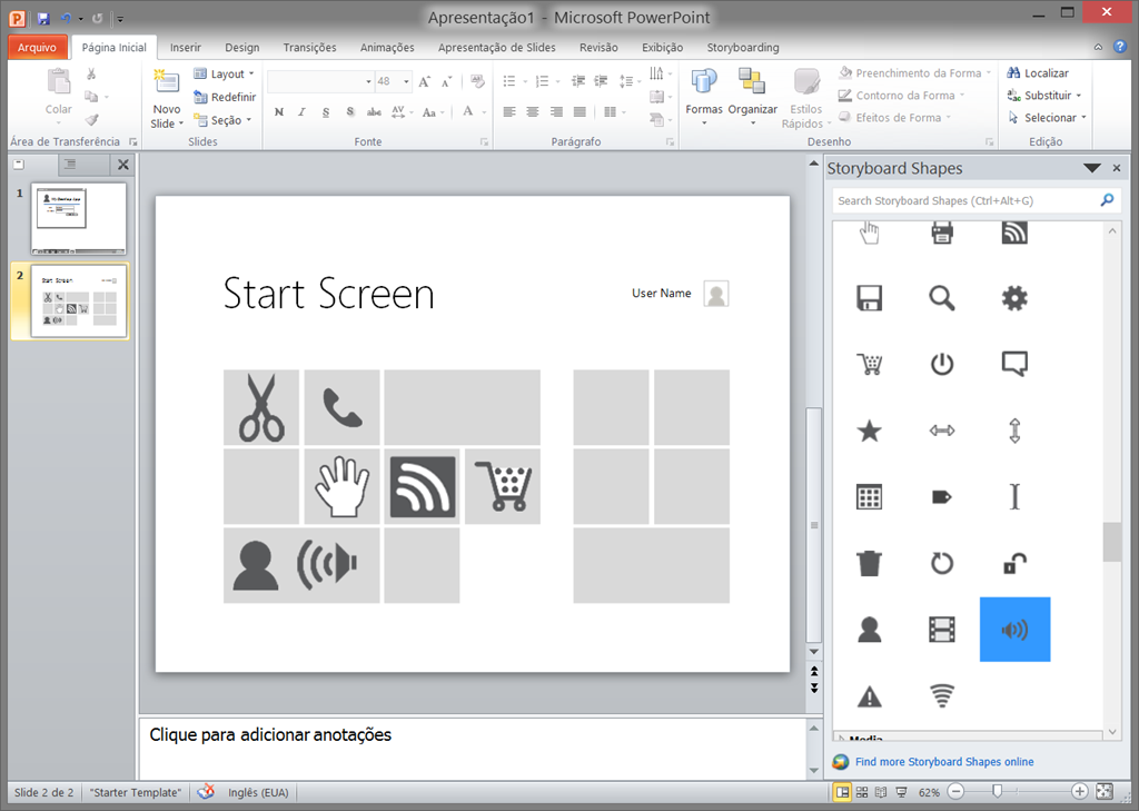 O PowerPoint Storyboarding é uma ferramenta que permite a construção de storyboards por meio do PowerPoint. Com essa ferramenta podemos construir protótipos visuais de maneira bastante rápida, com o auxílio de templates para web, mobile, desktop e Windows 8.