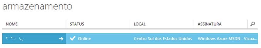 Nosso Windows Azure storage account depois de criado deverá se parecer com a imagem abaixo: