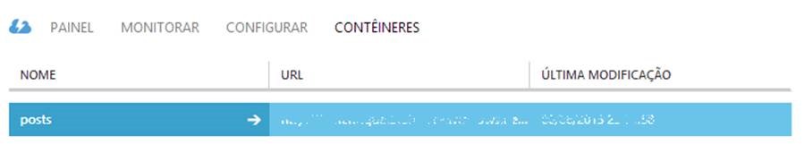 Após passados os parâmetros para o método e executado o método “SaveData”, veremos que foi criado um container chamado “posts” no nosso serviço de armazenamento do Windows Azure storage.