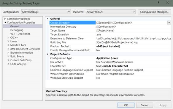 Error 1 error MSB8020: The build tools for v140 (Platform Toolset = ‘v140’) cannot be found. To build using the v140 build tools, please install v140 build tools. Alternatively, you may upgrade to the current Visual Studio tools by selecting the Project menu or right-click the solution, and then selecting "Upgrade Solution…". C:\Program Files (x86)\MSBuild\Microsoft.Cpp\v4.0\V120\Microsoft.Cpp.Platform.targets 64 5 WorkingWiithStrings.