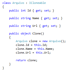 Mas existe uma ressalva sobre este método: o Attach EXIGE que a instância de objeto passada por parâmetro não esteja vinculada a nenhum outro Data Context, isto é, caso a instância de objeto passada por parâmetro para o método Salvar tenha vindo diretamente de um Data Context, o attach não ocorrerá, e receberemos uma mensagem de erro, por isso, neste caso, a classe Arquivo implementa a interface ICloneable, resultando nesta estrutura: